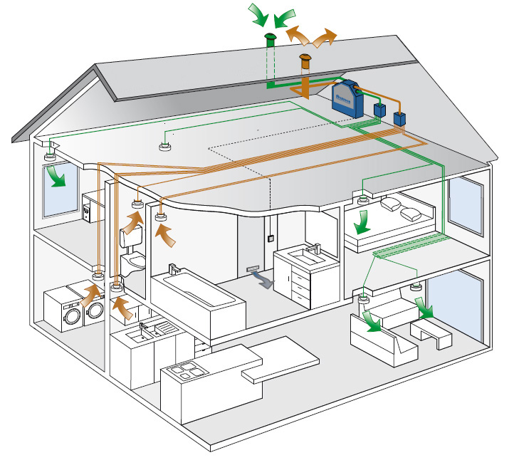 The ventilation system consists of correctly calculated parameters, and contains, in addition to the fan type, the ventilation duct network, the suction and discharge ventilation grilles, filters and other necessary equipment.